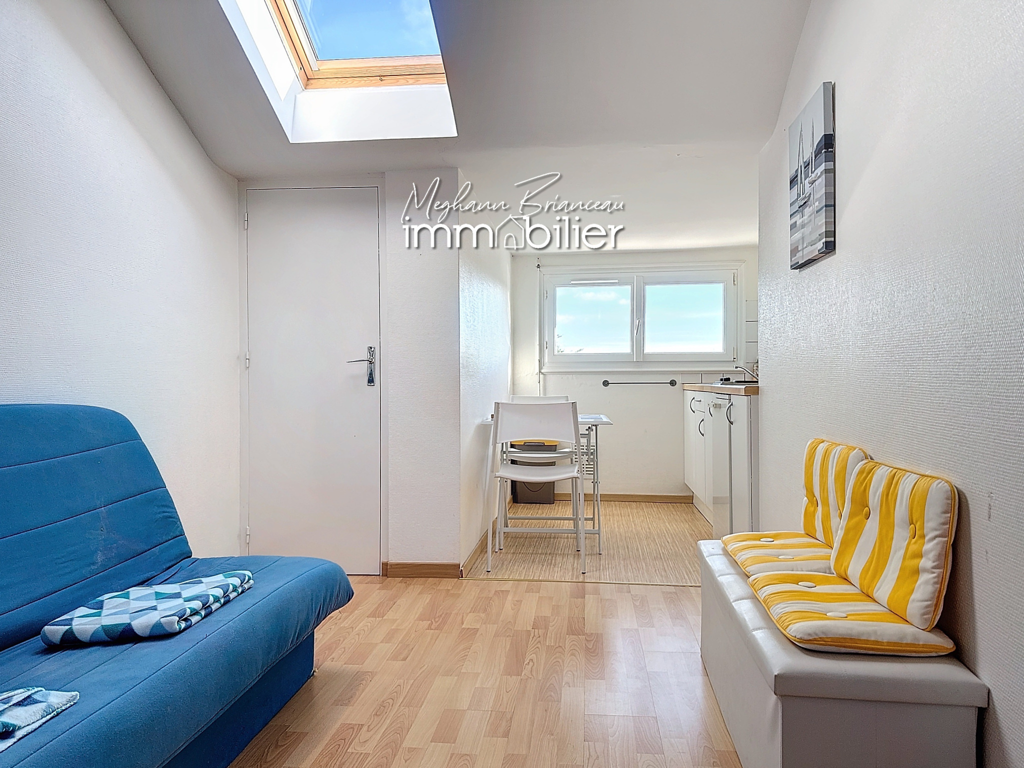 - Une pièce de vie lumineuse avec coin cuisine aménagé,