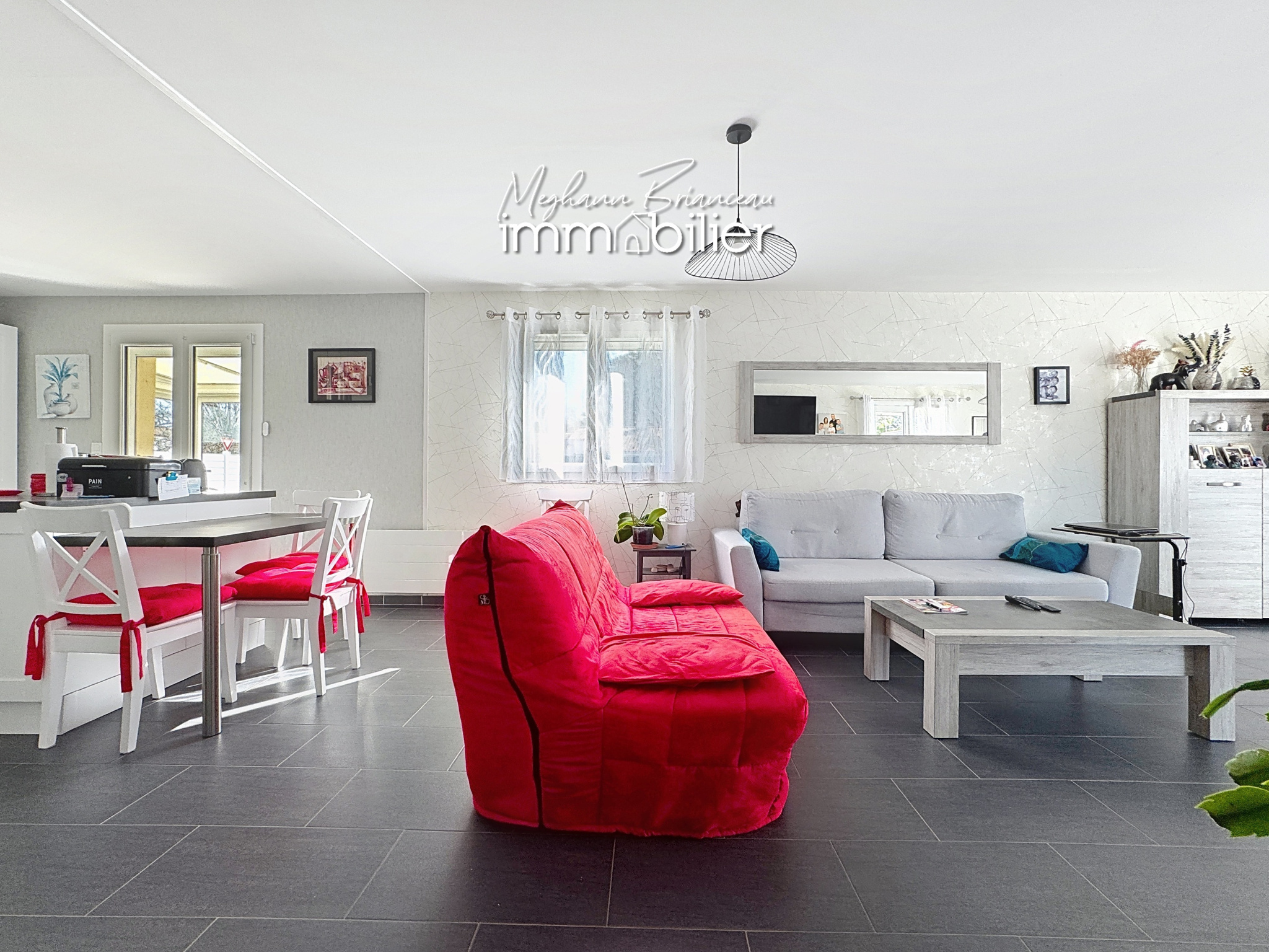 D’une surface habitable d’environ 84 m² (hors véranda de 7,27 m²), cette maison de plain-pied se distingue par une distribution fonctionnelle et une belle luminosité. Elle propose une agréable pièce de vie de 41 m², baignée de lumière, avec une cuisine ouverte entièrement aménagée et équipée (hors réfrigérateur). Cet espace convivial est parfait pour recevoir, partager des moments en famille ou profiter d’un quotidien confortable.