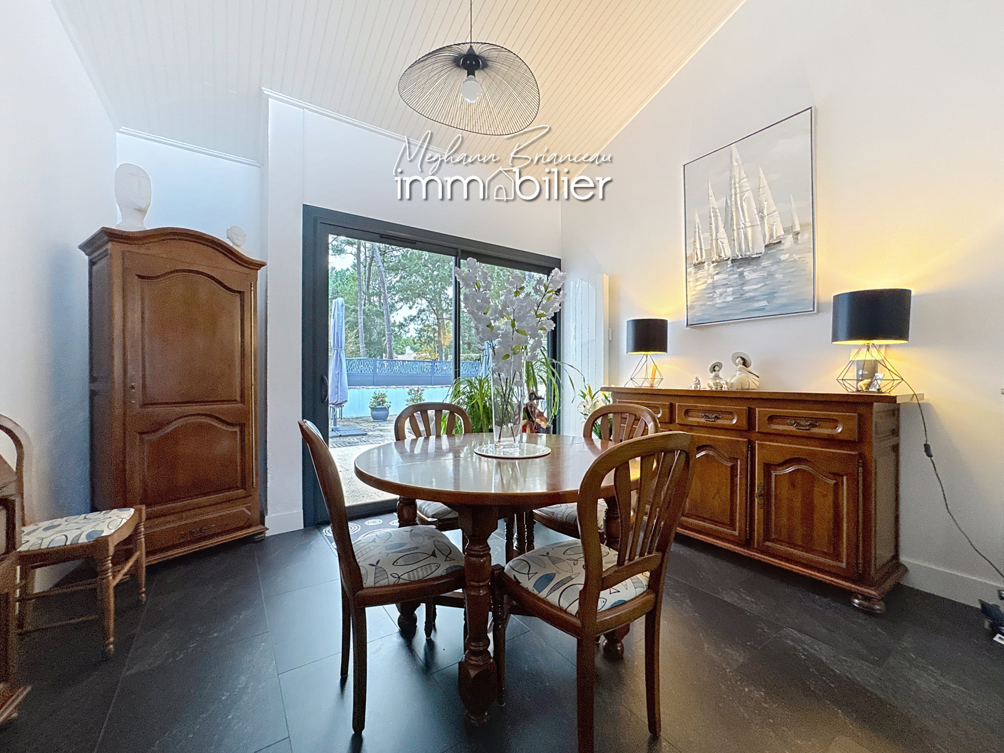 Exposée Est/Ouest, la maison bénéficie d’un ensoleillement généreux tout au long de la journée. Côté extérieur, vous serez charmés par un espace plein Ouest sans vis-à-vis, offrant une superbe vue dégagée sur les pins et un environnement particulièrement calme, loin de toute nuisance sonore.