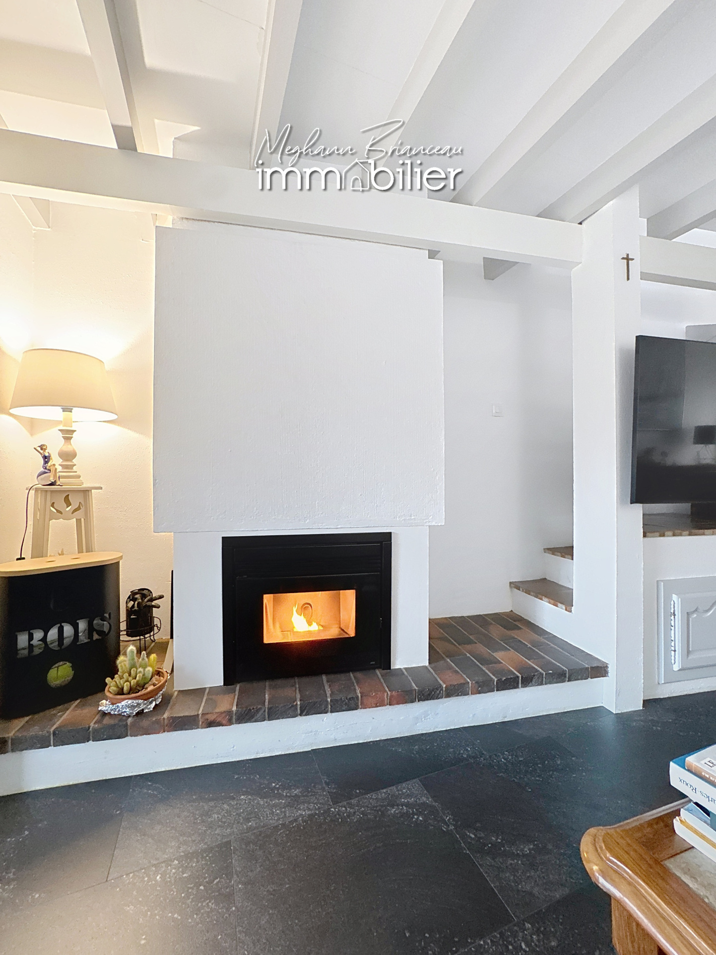 La maison vous offre près de 109 m² de surface totale à utiliser ! Vous y découvrirez une entrée avec placards menant à un beau séjour traversant, avec un poêle à granulés pour un confort optimal toute l’année. Une charmante mezzanine avec rangements le surplombe et pourra facilement accueillir un coin nuit supplémentaire ou un bureau pour le télétravail. La cuisine indépendante, entièrement aménagée et équipée, bénéficie elle aussi d’un accès direct à l’extérieur.