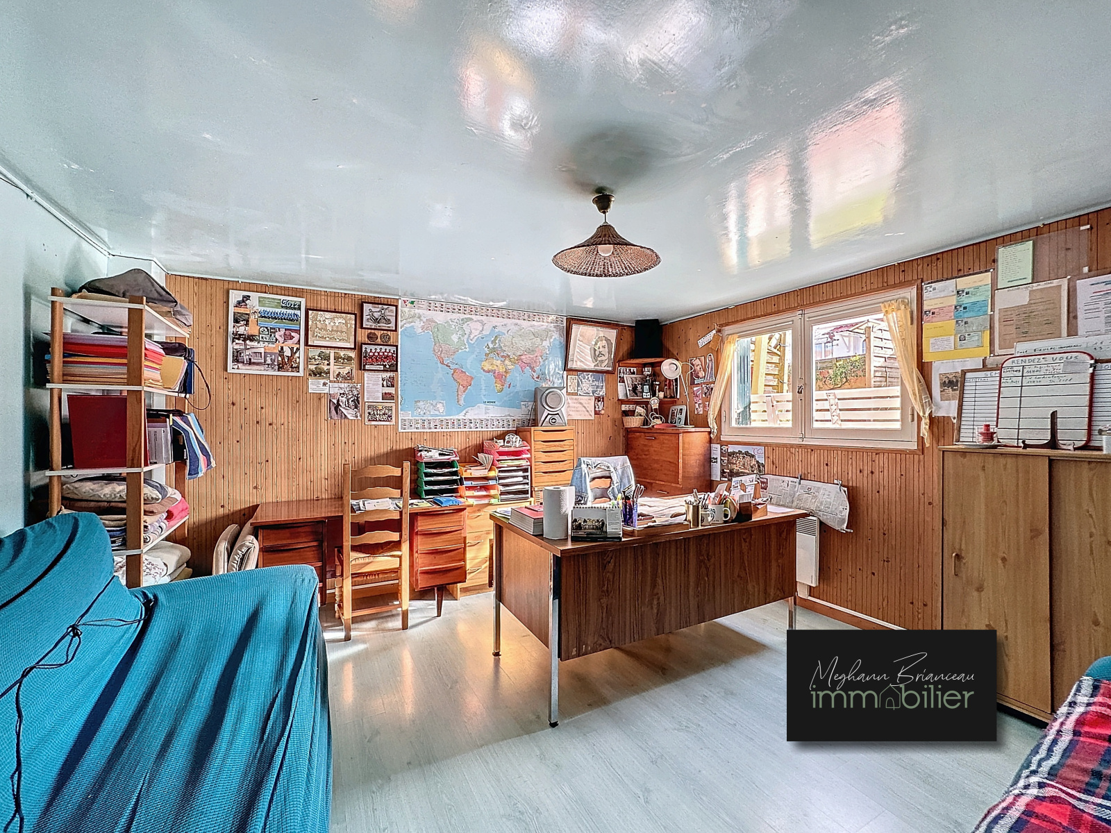 Son sous sol semi enterré est composé d'une chaufferie, d'un grand bureau (isolé et chauffé de 16 m²) et d'un garage.